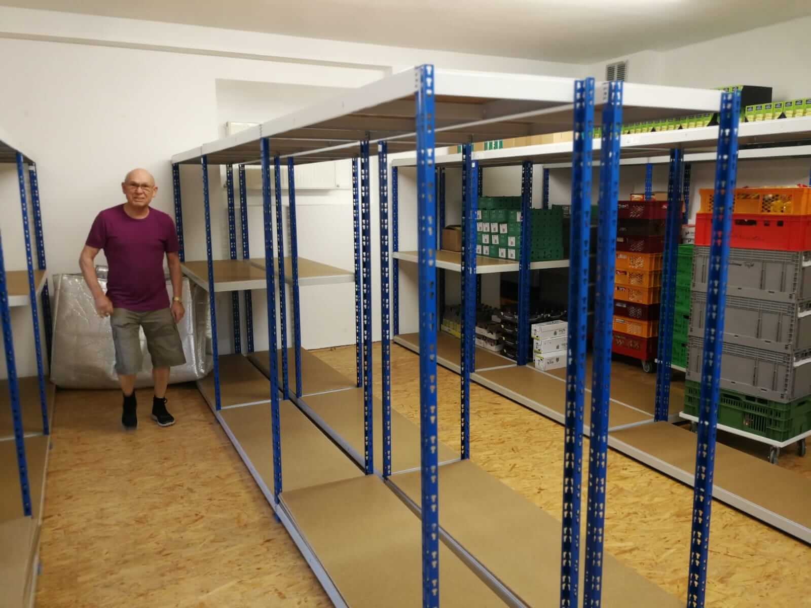 Dann standen am neuen Tafel-Standort im Goetheweg noch der Feinschliff an, restliche Reinigungs- und Aufräumarbeiten, der Aufbau von Zusatzregalen und deren Wiederbestücken mit Waren und Lebensmitteln, die Installation von Corona-Schutzvorrichtungen und das Implementieren von Hygiene- und Abstandsregeln. Nach zwei Ausgaben während der angespannten Pandemiezeit mit gepackten Tüten und Lebensmittelgutscheinen für die Berechtigten war am 17. Juni ab 15 Uhr dann wieder die Aufnahme des mittwöchigen Regelbetriebs am neuen Standort angesagt. Mit dem „alten“, aber immer noch und wieder hochmotivierten und -engagierten Tafel-Personal rund um die Vorstandschaft Hans-Jürgen Schelle, Klaus Hartmann, Jutta und Otto Leidenberger sowie Maria Heindorf.